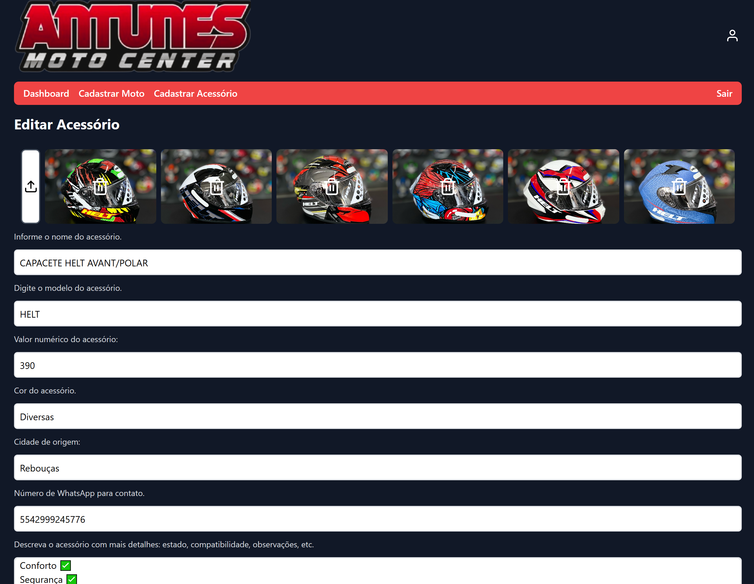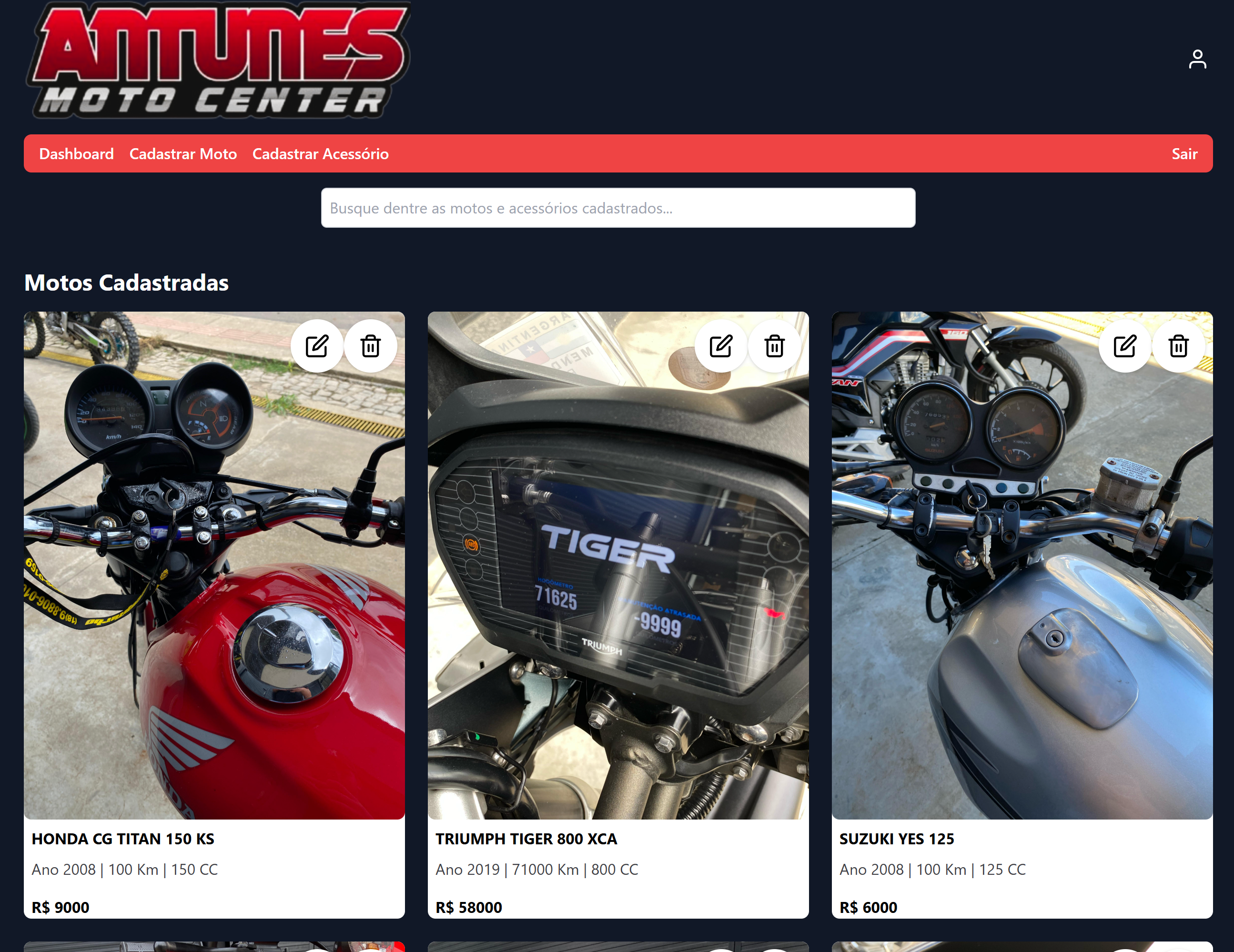 Plataforma de vendas de motocicletas e acessórios, com painel administrativo desenvolvido em React e Firebase.
