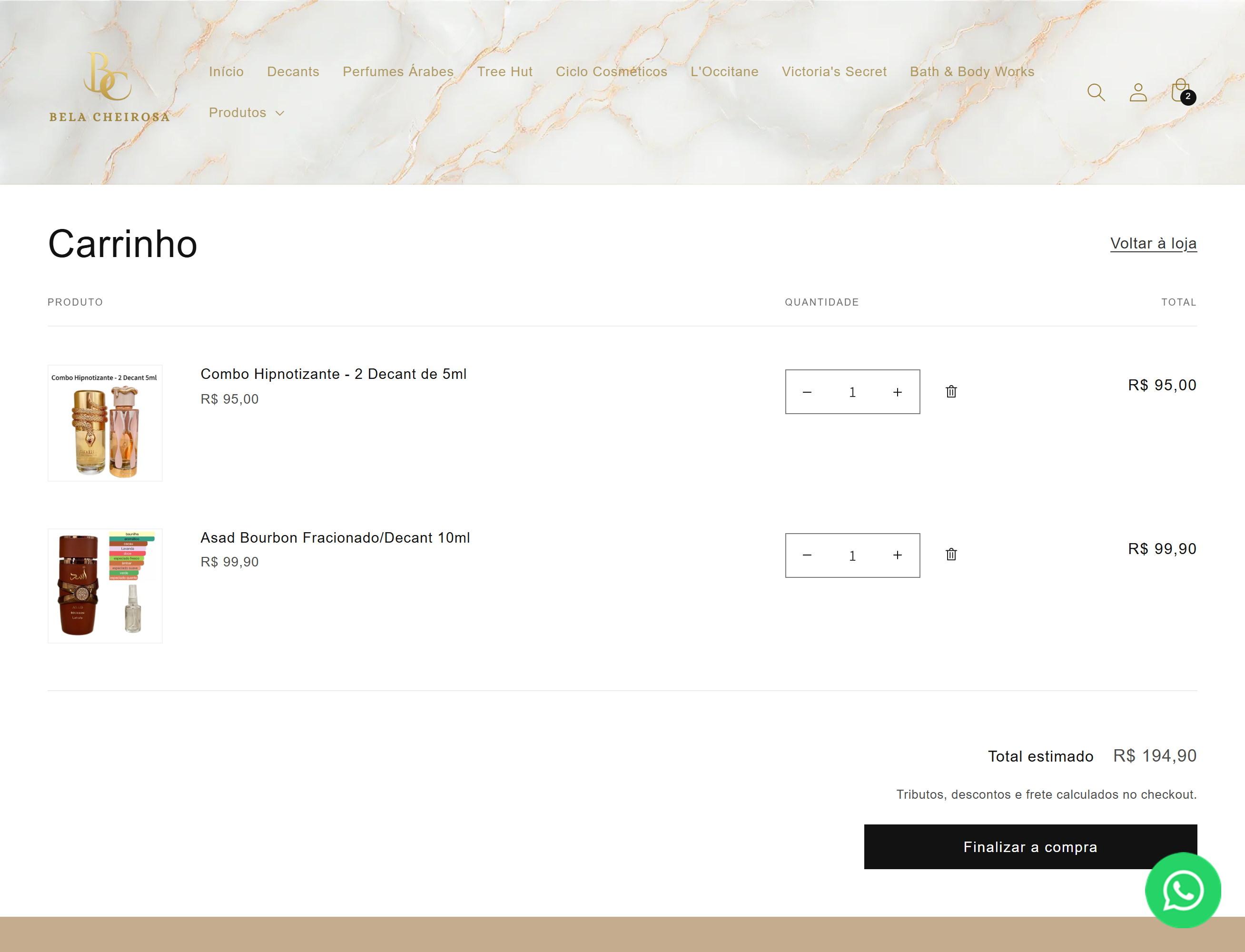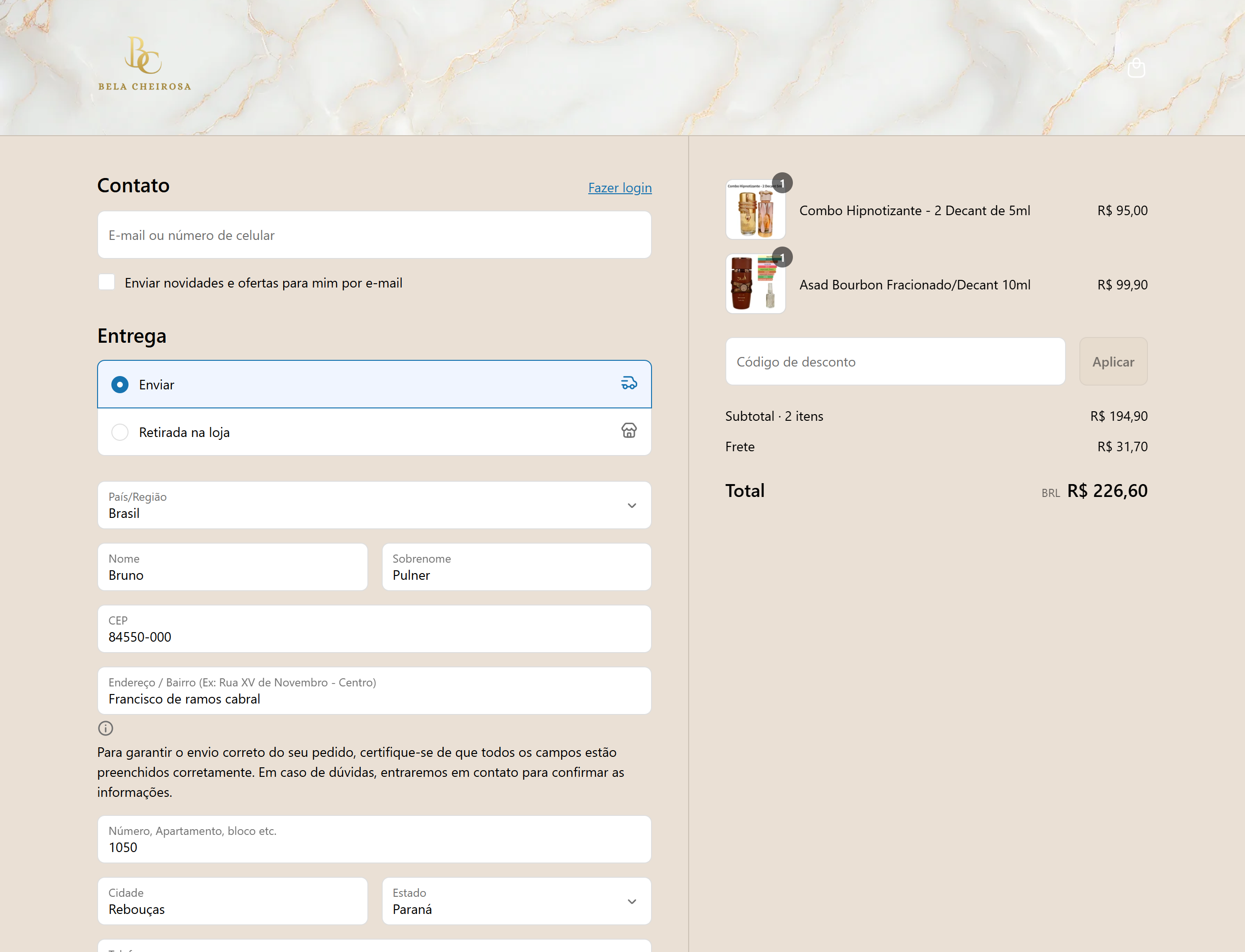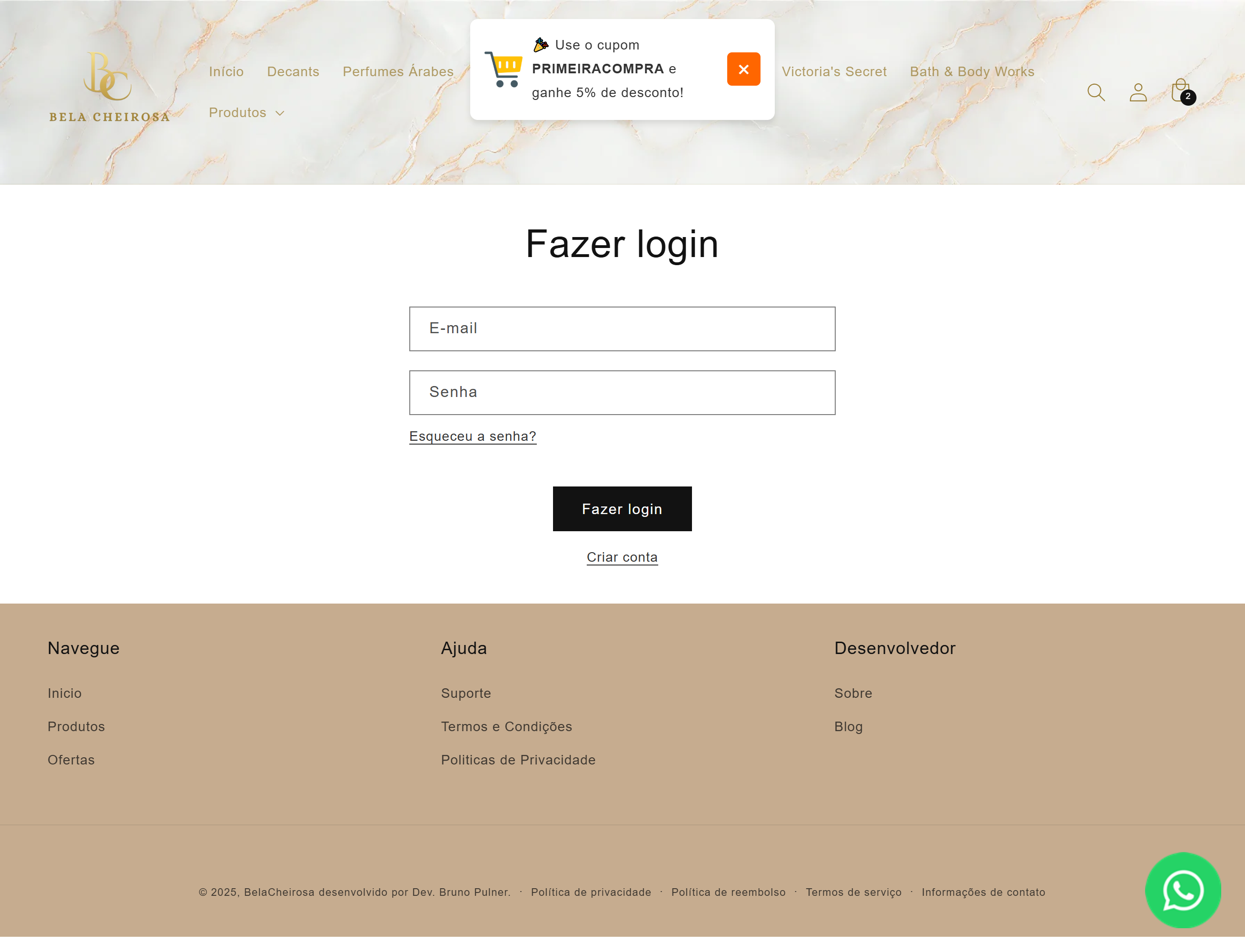 E-commerce de perfumaria com checkout integrado e design responsivo.