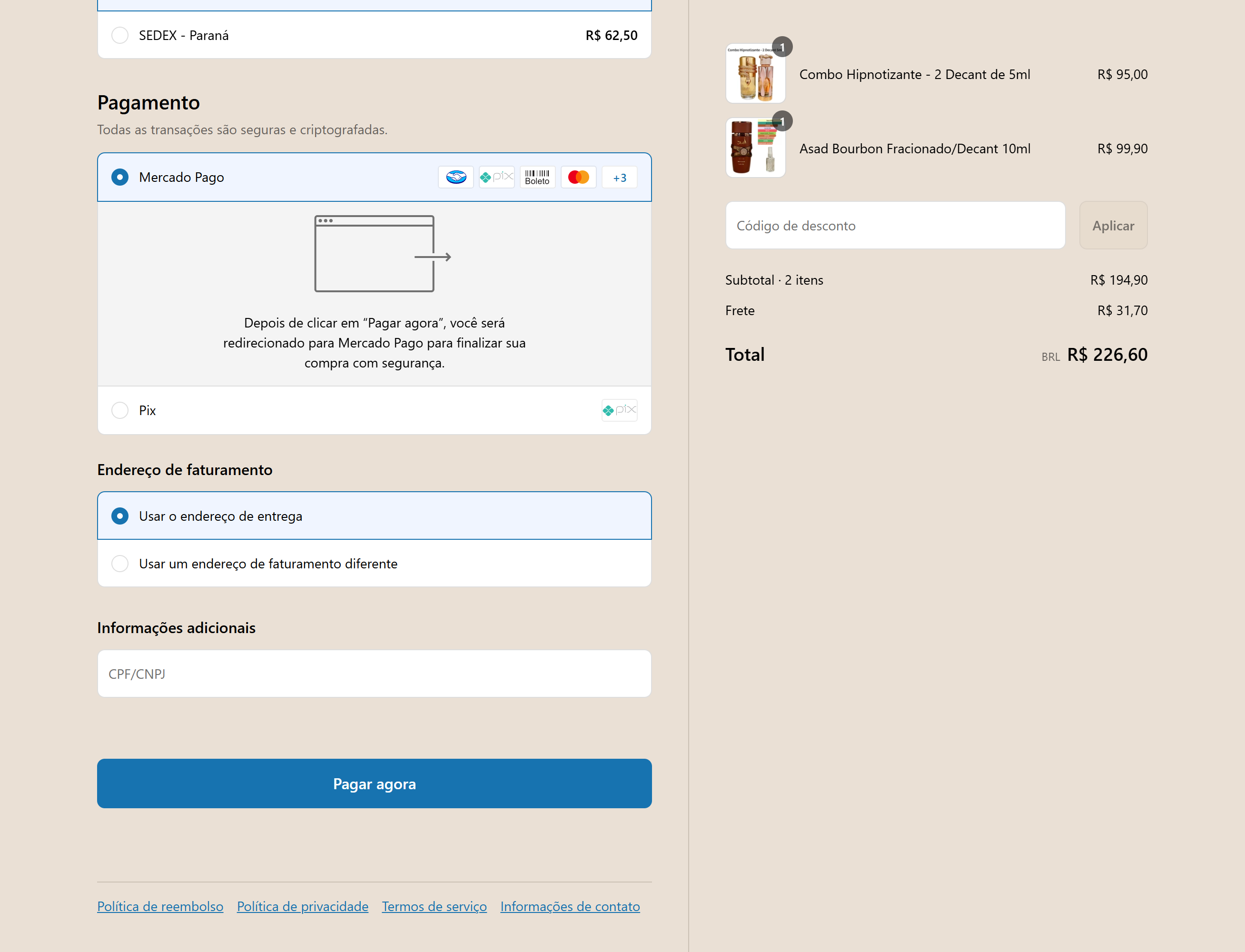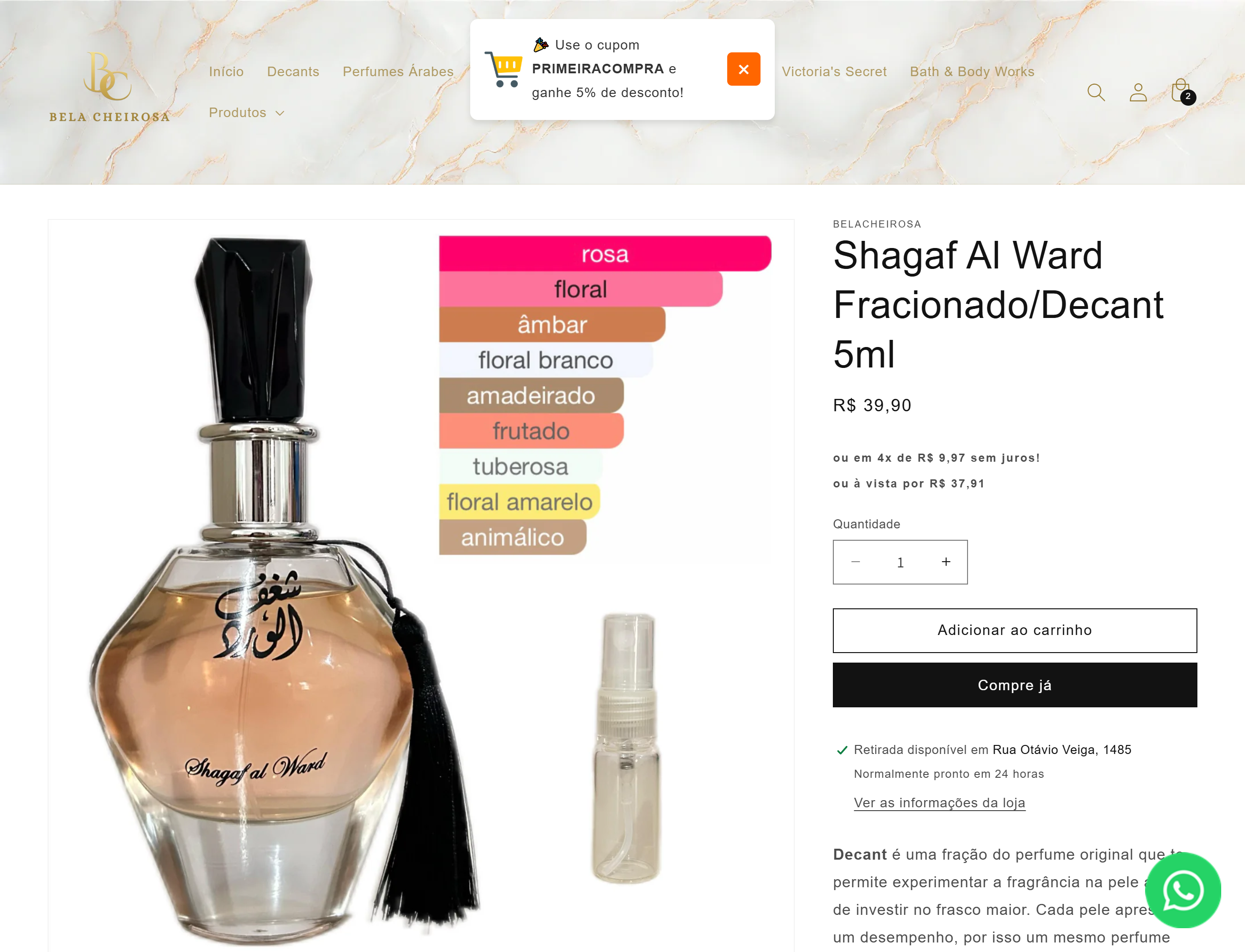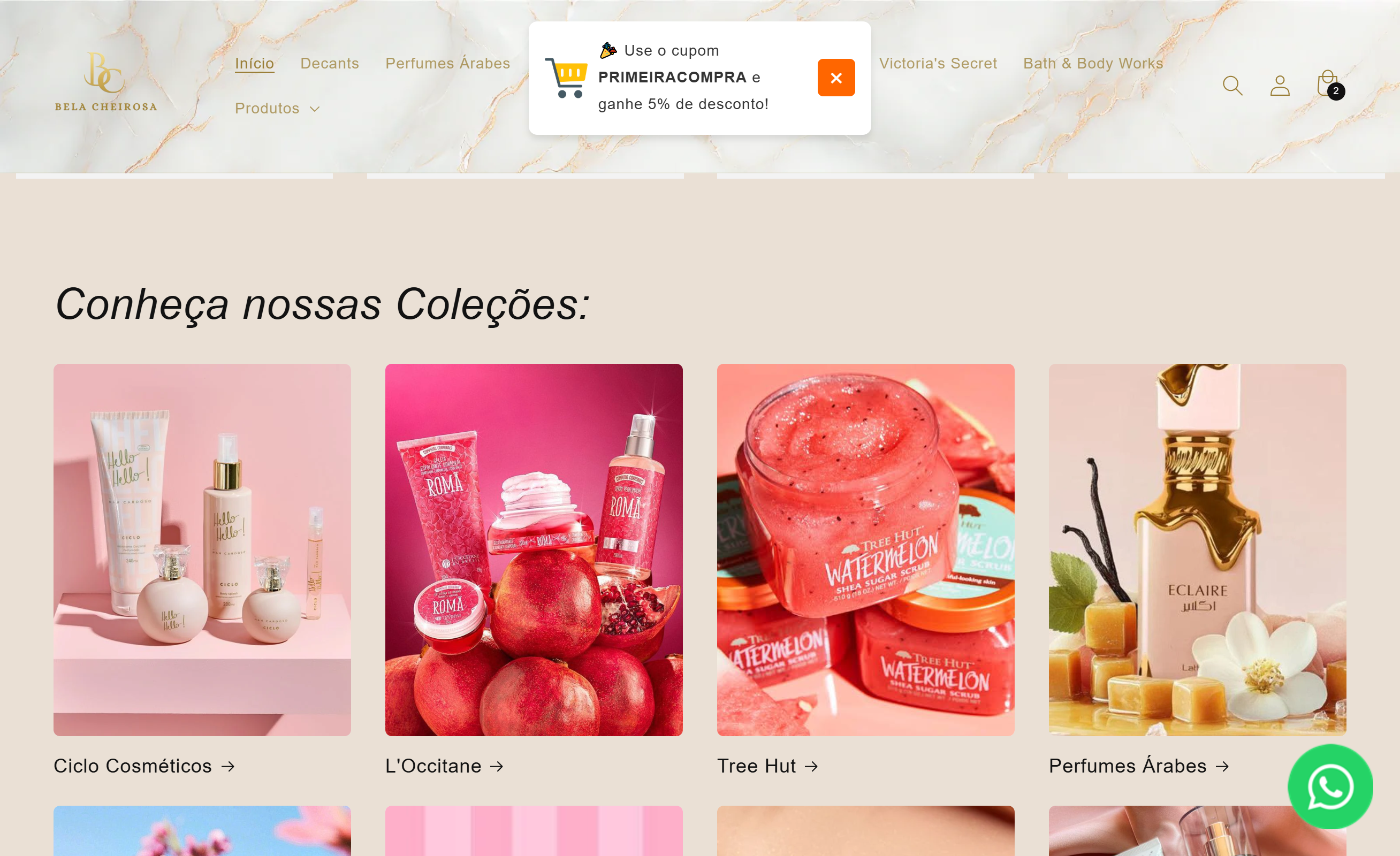 E-commerce de perfumaria com checkout integrado e design responsivo.